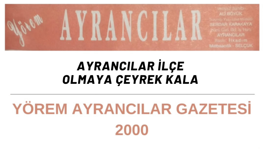 Ayrancılar Gündem olarak geçmişte olduğu gibi bugün de bu konunun takipçisiyiz. 2000 yılındaki gazete manşetlerini hatırlatarak bu soruyu yeniden gündeme taşıyoruz: Ayrancılar neden hâlâ ilçe olmadı?
