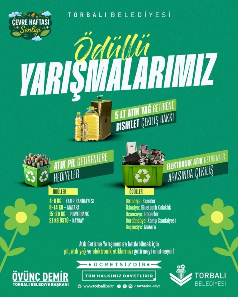 Belediye, şenlikte ödüllü yarışmalar da düzenleyecek. Özellikle katılımcılar çevre konusundaki projeleri ve yaratıcı fikirleriyle yarışacak. Kazananlar, çevre dostu fikirleriyle ödüllerini alacak.