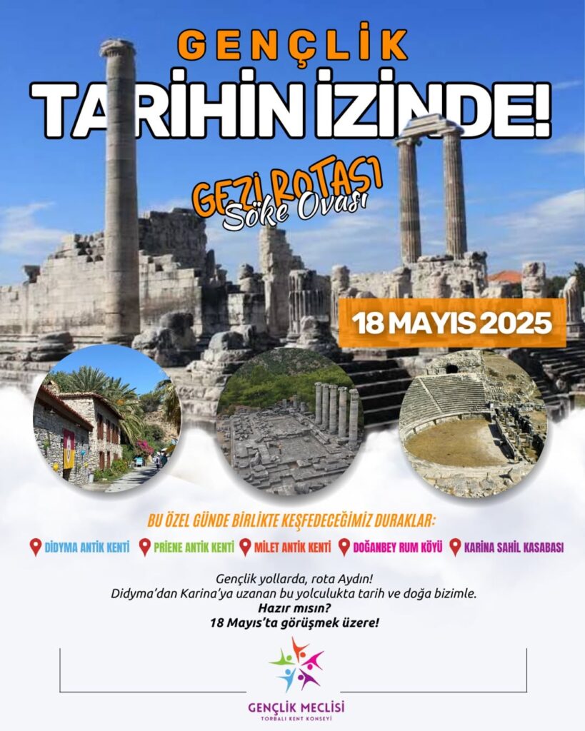 Torbalı gençlik etkinlikleri, gençleri tarih ve doğayla buluşturmaya devam ediyor. Torbalı Gençlik Meclisi, 18 Mayıs 2025 tarihinde gençlere unutulmaz bir kültür gezisi yapacak. Dahası ücretsiz olarak düzenlenecek bu gezi, Aydın’ın önemli tarihi duraklarını kapsıyor. Gençler hem eğlenecek hem de öğrenme fırsatı bulacak.
