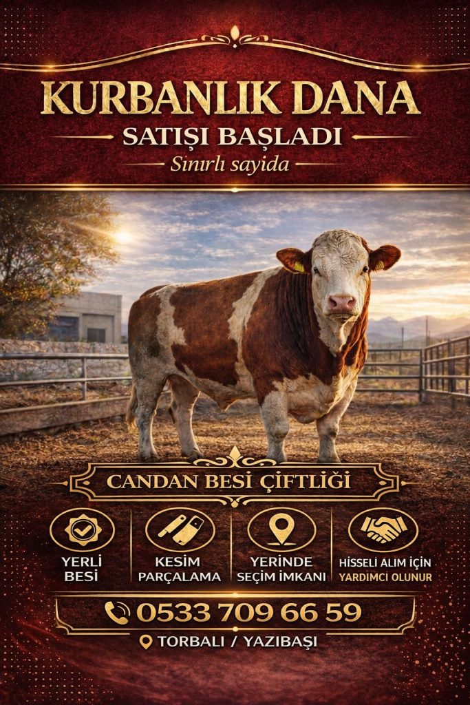 Torbalı kurbanlık dana alıcıları Yazıbaşı bölgesindeki Candan Besi Çiftliği tesislerini sıklıkla ziyaret ediyor. Çünkü Kurban Bayramı yaklaşırken vatandaşlar en kaliteli büyükbaş hayvanları erkenden seçmek istiyor. Böylece işletme sahipleri sınırlı sayıdaki yerli besi hayvanlarını müşterilerin beğenisine gururla çıkarıyor. Ayrıca yetkililer güvenilir bir alışveriş için tüm hazırlıklarını eksiksiz bir şekilde bitiriyor. Aynı zamanda Torbalı tarım arazilerinde yetişen hayvanlar tamamen doğal yemler tüketiyor. Bununla birlikte Candan Besi Çiftliği kaliteli et üretimiyle sektörde çok büyük fark yaratıyor.